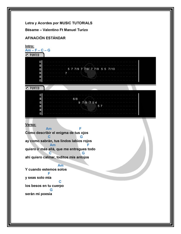 Besame Valentino Ft Manuel Turizo Tus Acordes Favoritos Facebook (letra y música de valentino y manuel turizo?).