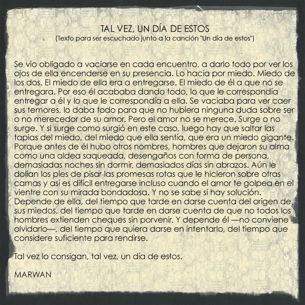 Cancion Un Dia A La Vez Letra / Siempre lo vi como una historia formado de la nada sin un fin siempre lo vi como una fantasía y nunca imagine que iba a ser tuvieron que pasar muchas primaveras para verte como si fuera la vez primera pensé que iba a ser mi ultima caída pero en tus ojos encontré la única.