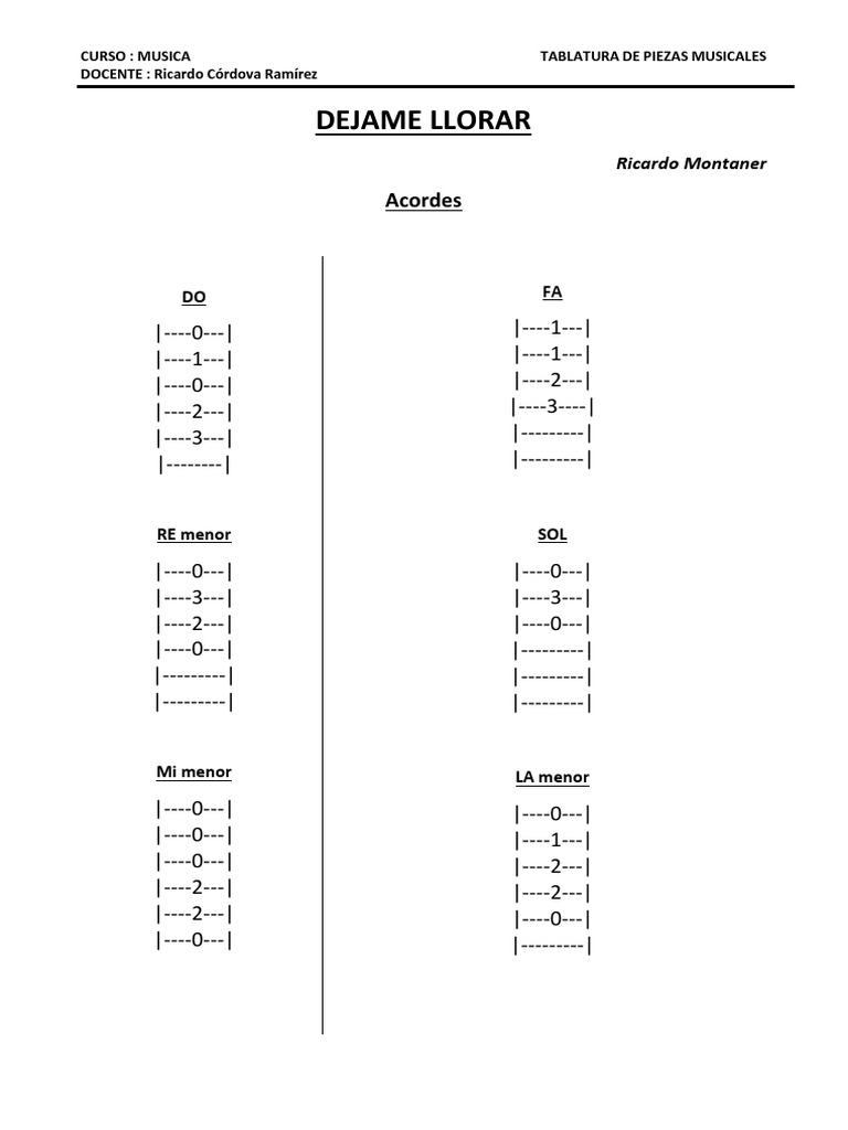 Dejame Llorar Acordes - Aprende esta canción y muchas mas en acordesweb.