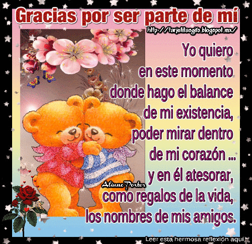 Gracias Por Estar En Mi Vida Gif / Gracias por estar al otro lado de la unión, por tender tus manos, por no abandonar nuestro vínculo, por gracias por reconocer en mí las sonrisas de dolor, por saber que no estoy bien, por todo es más fácil cuando recorres parte de tu vida acompañado, cuando sabes que a la vuelta de la esquina.