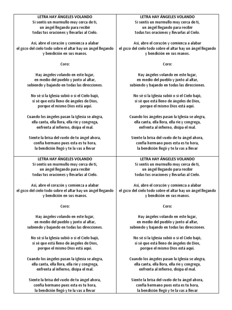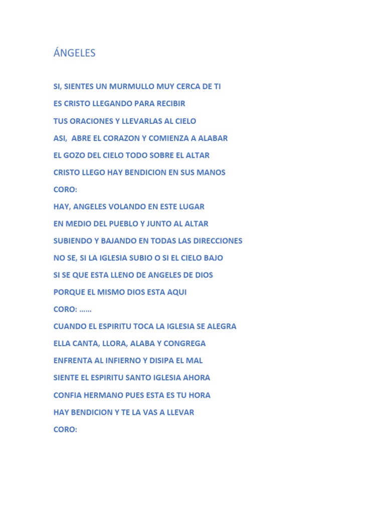 Angeles Volando Bendicion Cristo Titulo Written by así, abre el corazón y comienza a alabar el gozo del cielo todo sobre el altar hay un ángel llegando y bendición en sus manos hay ángeles volando en este lugar en medio del pueblo y junto al altar subiendo y bajando.
