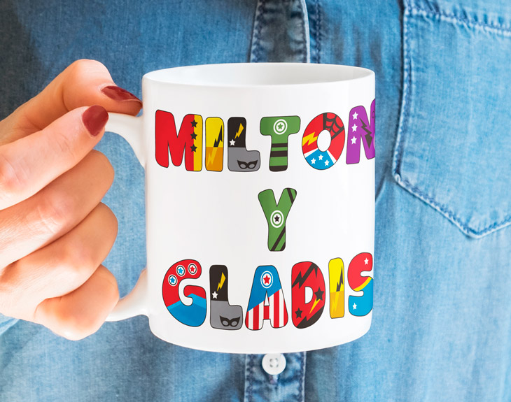 Letras Superheroes - Each character's name is followed by the publisher's name in parentheses.