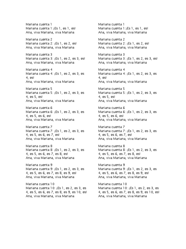 Mariana Cuenta Uno Letra : Mariana (español) mariana cuenta uno mariana cuenta uno és uno, és uno, és ana, ¡viva mariana!