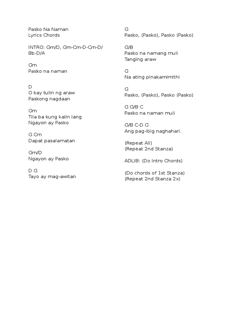 Pasko Na Naman Chords - Pasko na naman o kay tulin ng araw;