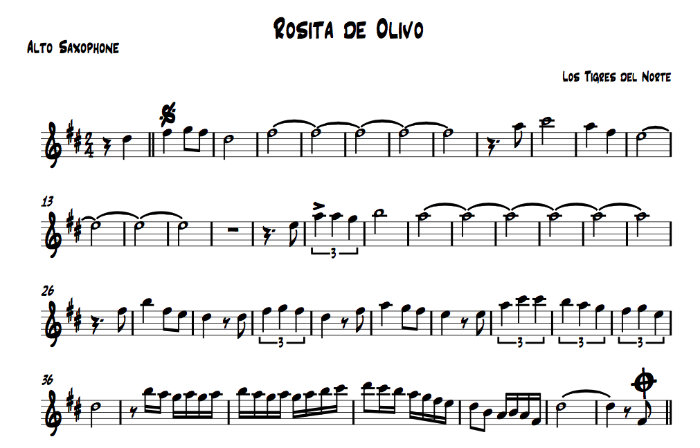 Rosita De Olivo Los Tigres Del Norte Saxofon Partitura ✨ 'ven a la fiesta' letra y acordes, buena canción de entrada para la misa, muy alegre, adecuada para misa de niños.