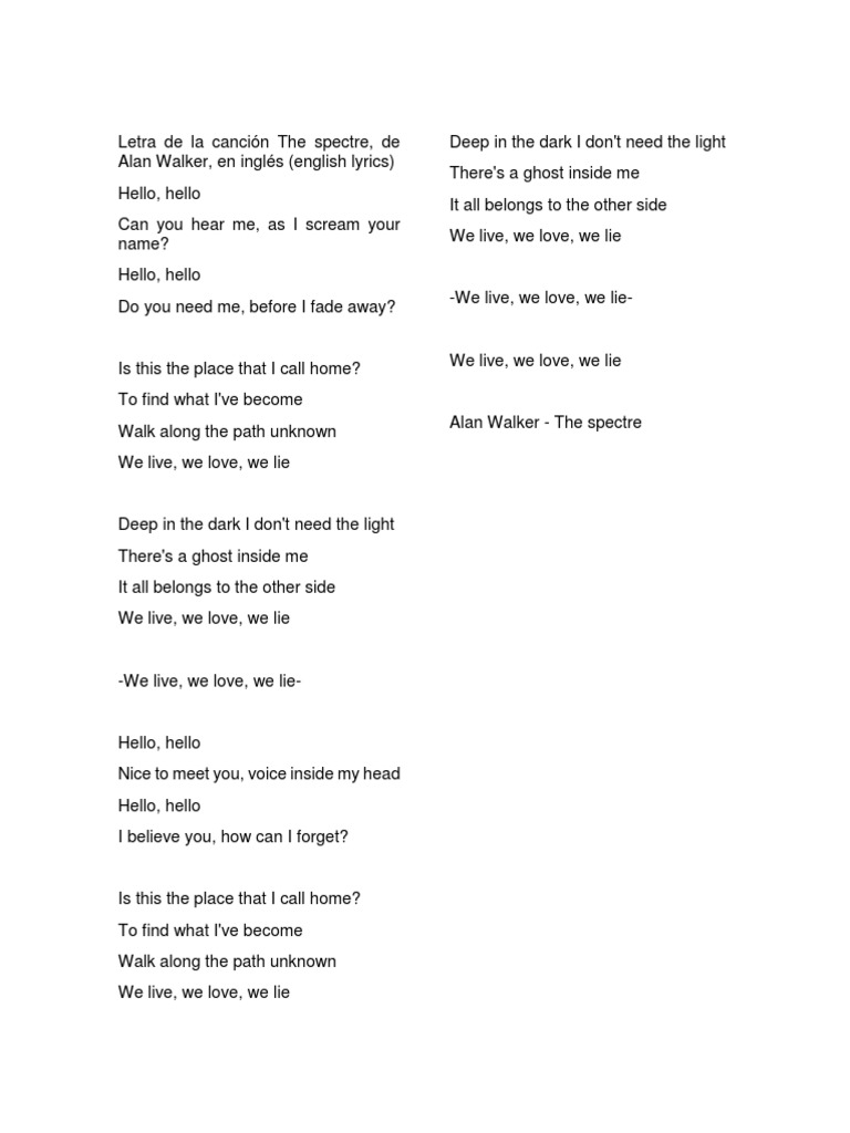 The Spectre Letra : Hello, hello do you need me before i fade away?